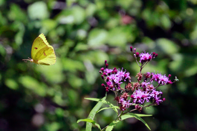 | Cloudless Sulphur nectaring on ironweed (Vernonia) - Willow Lake Unit |